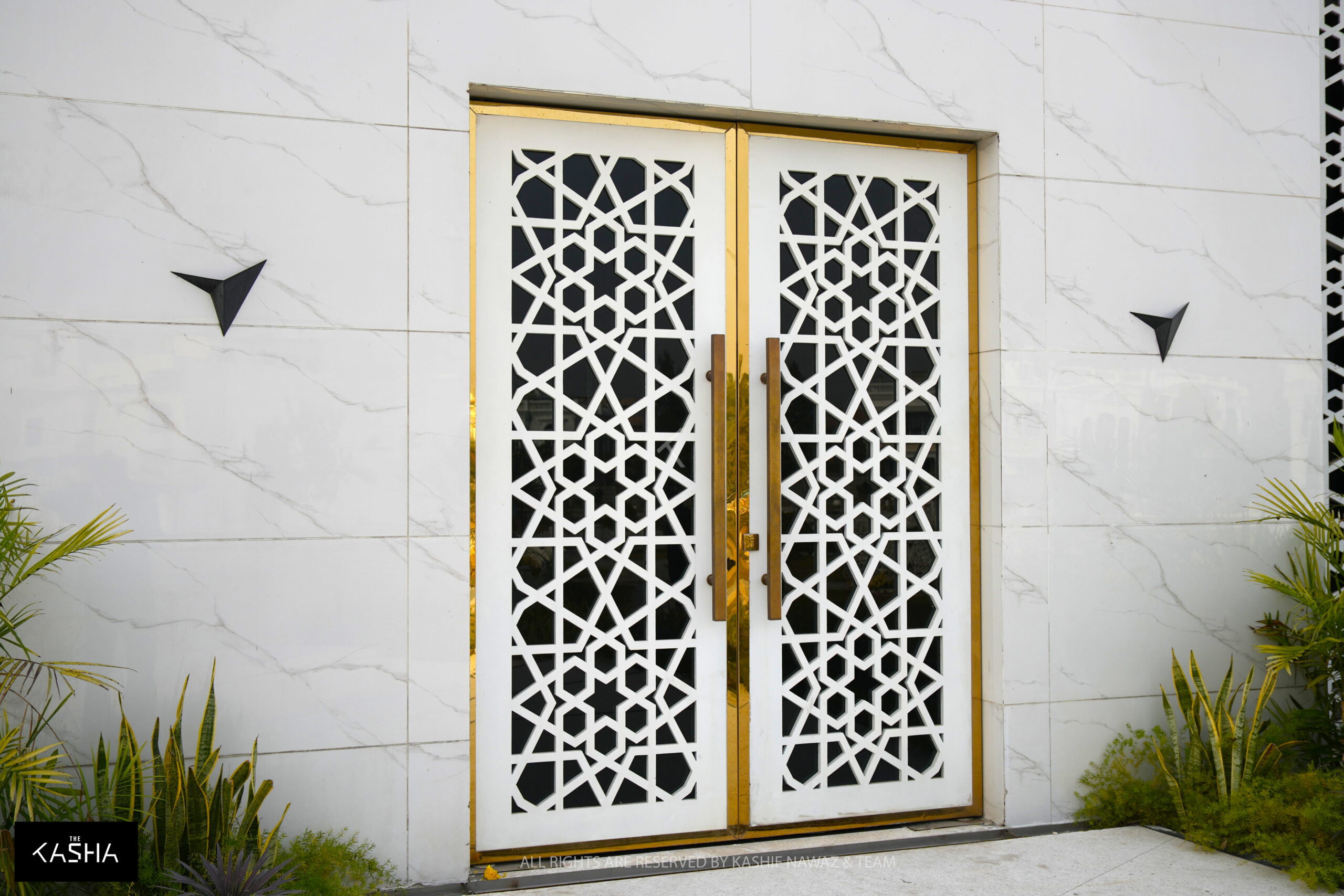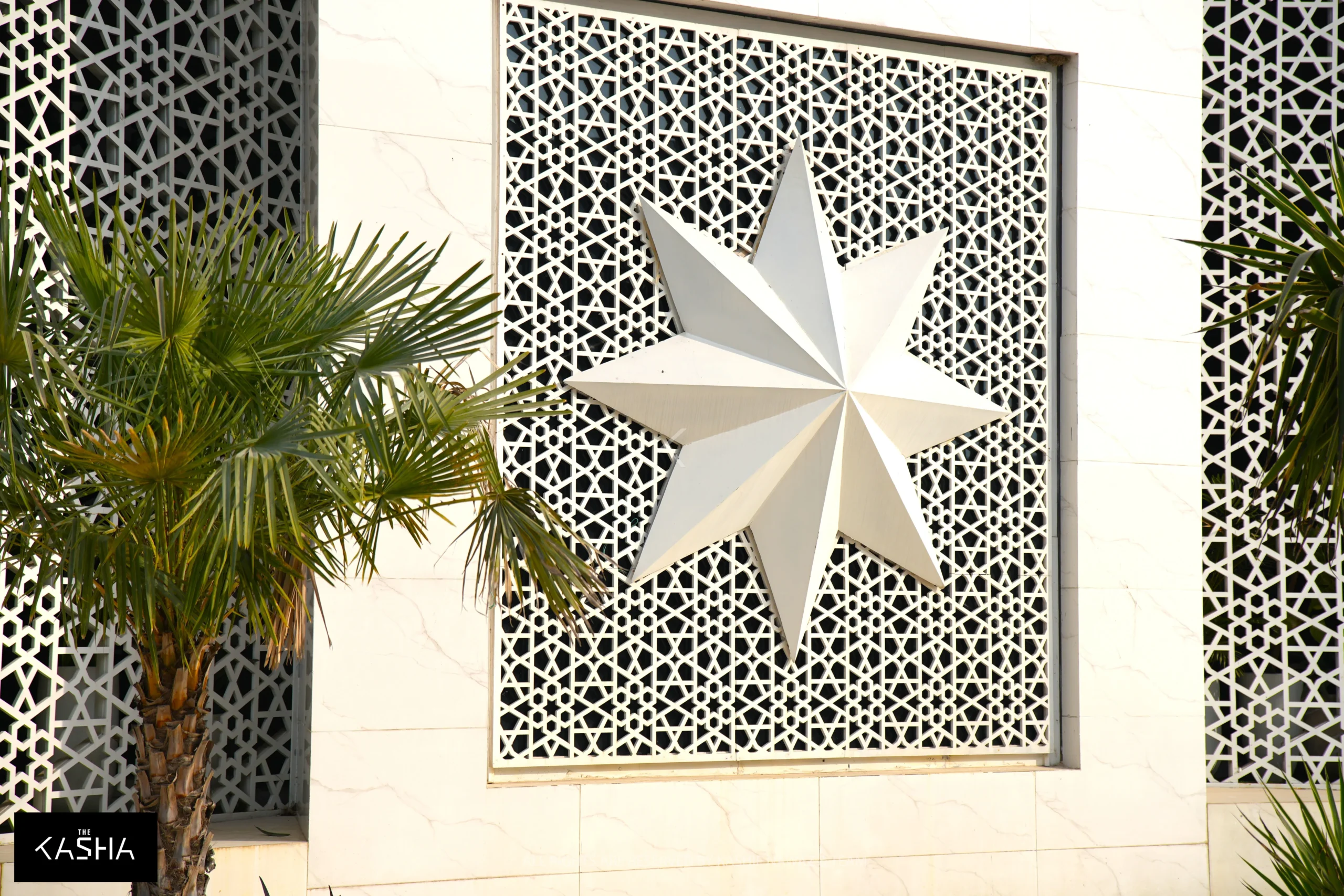 The Islamic star motif is thoughtfully integrated at multiple levels of the project. It is visible in the architectural composition, façade patterns, minaret detailing, interior ceiling design, carpet motifs, and even the main entrance door. This repetition of form creates a strong visual identity while symbolizing unity, order, and divine harmony.